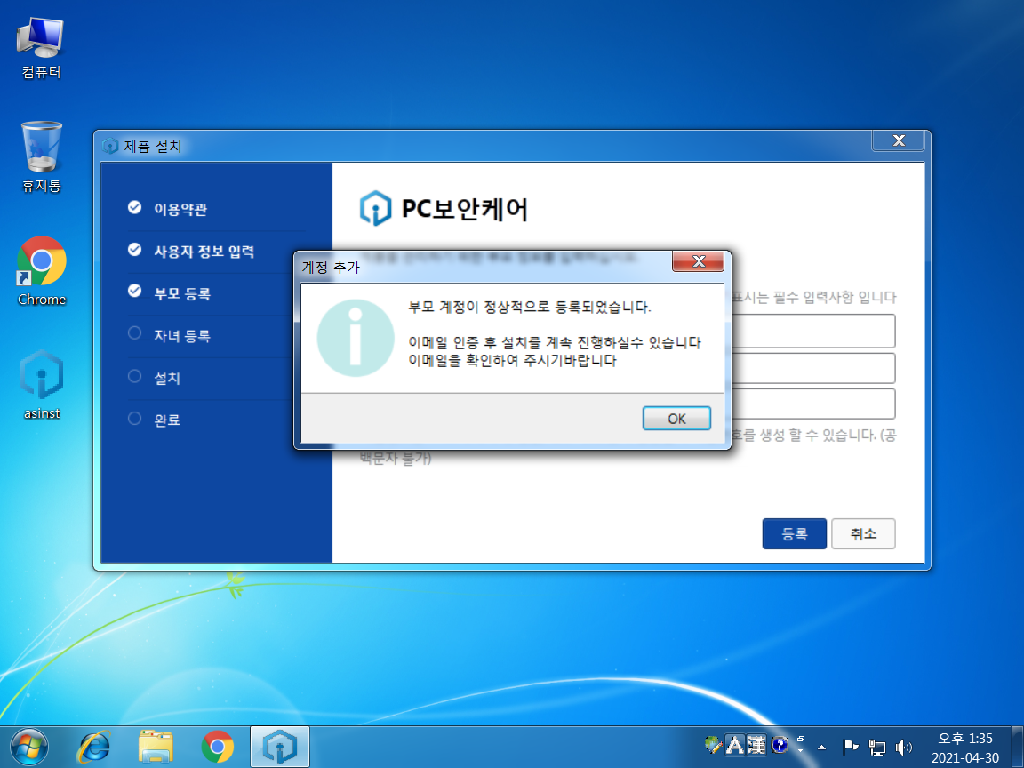 엑스키퍼 설치시 자녀 이름과 생년월일을 써야 한다.
