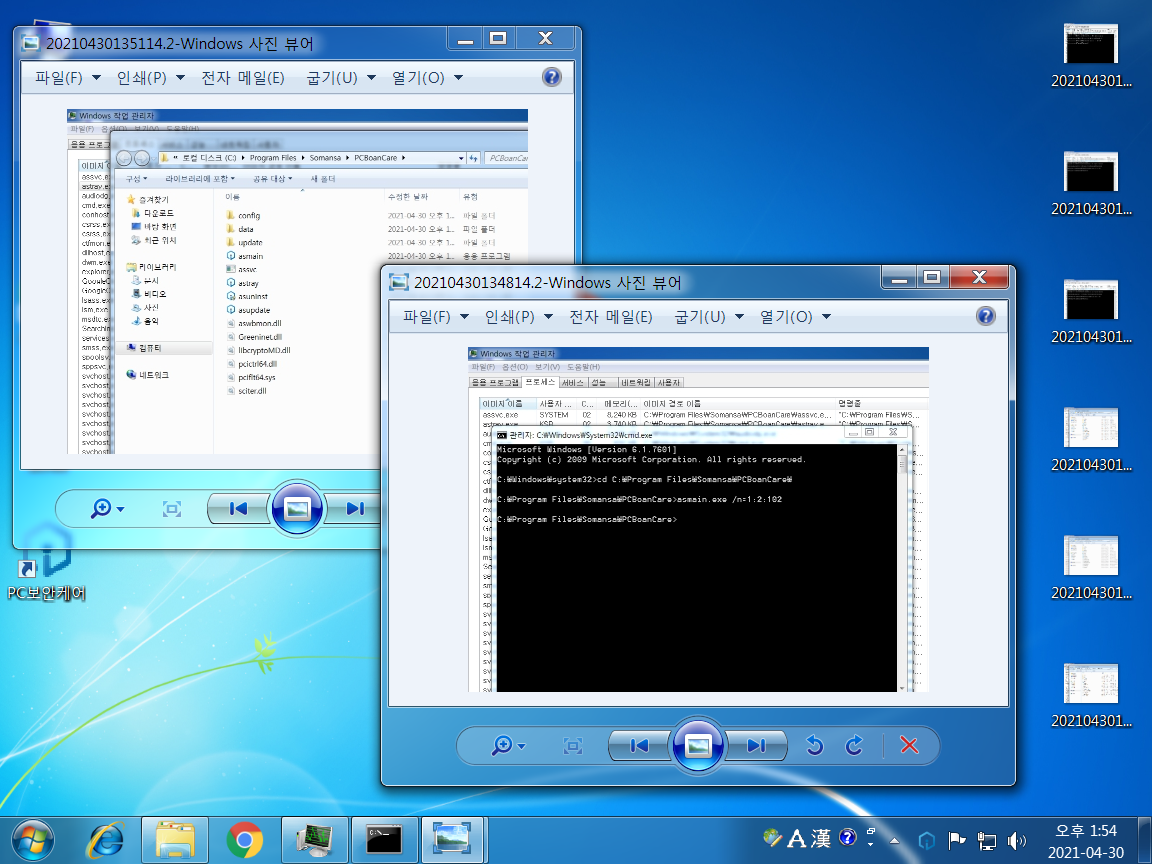 우선 ‘프로세스 종료하기’가 있었다. 엑스키퍼가 실행될 때 구동되는 prcsgin.exe, prcsxkman.exe, prcsxksm.exe, prcsxkdm.exe, prcsxsdbman.exe, svcxkcore.exe,
