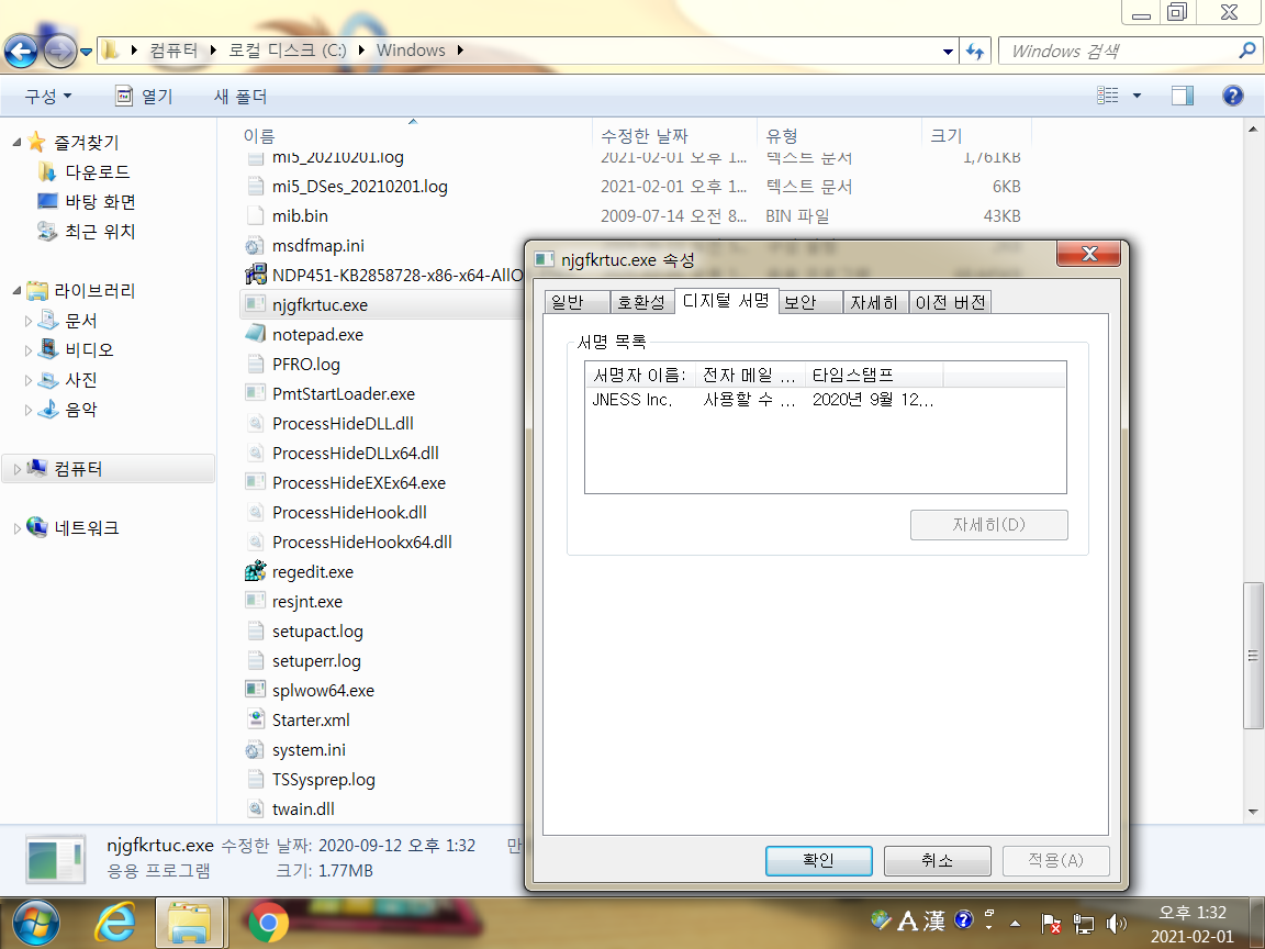 일단 간단하게 프로그램에 대한 정리를 하자면 실행 파일은 디지털 서명에 JNESS Inc. 로 서명되어 있습니다.