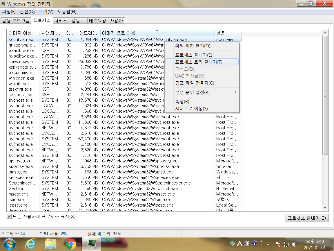 그리고 프로세스 끝내기로 해주시면 됩니다.