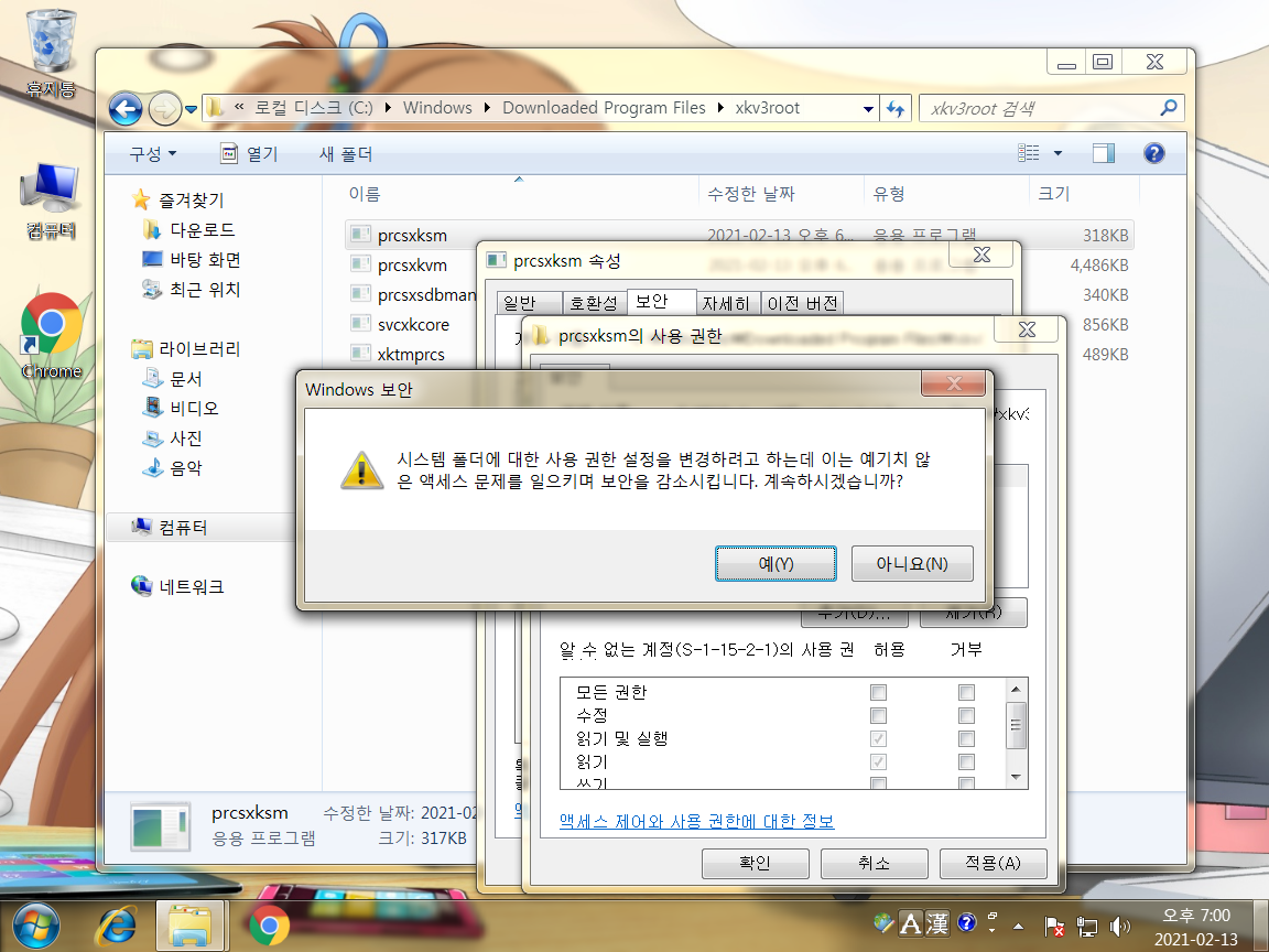 친절하게 전처럼 프로그램들을 권한거부 해줍니다.