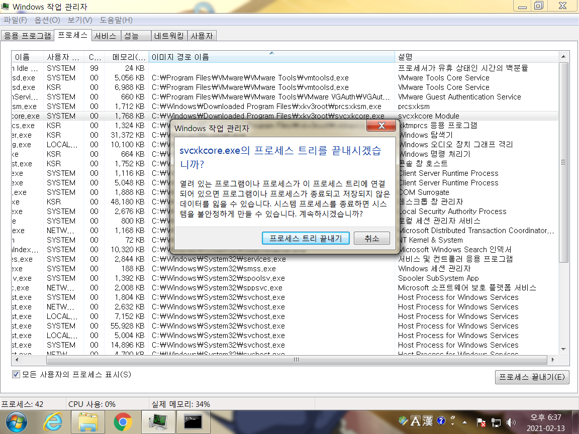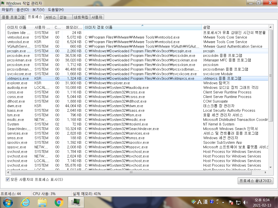 일단 작업 관리자로 보면