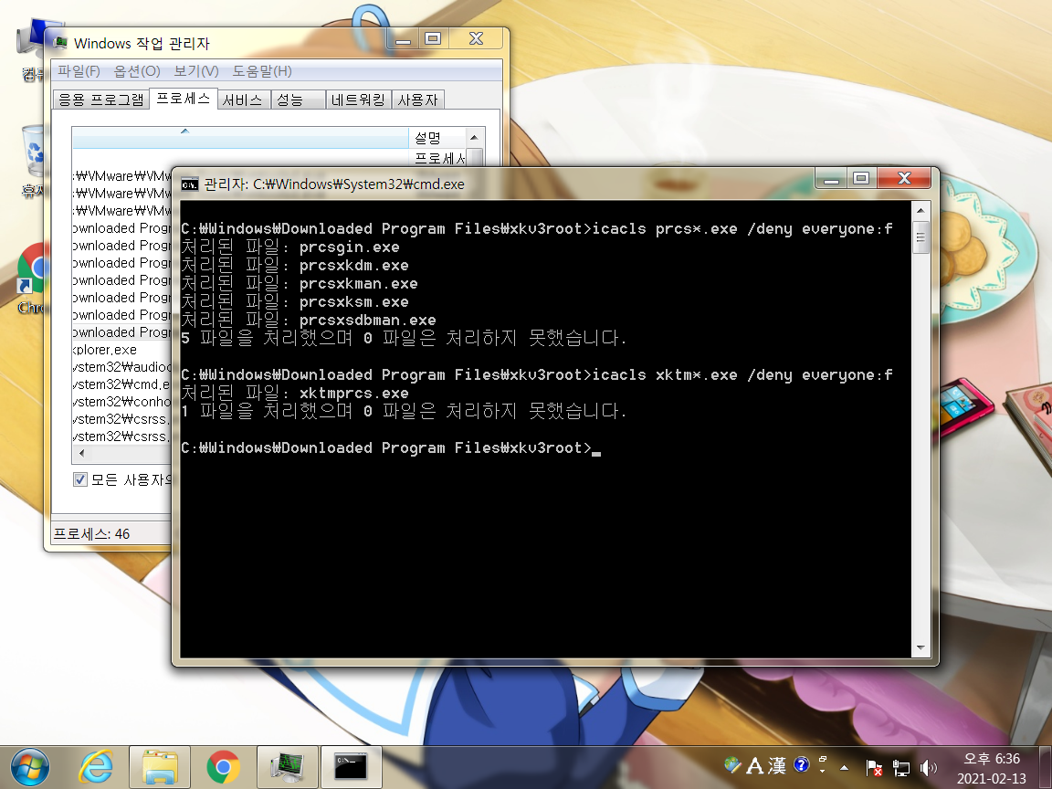 사진처럼 icacls 해서 권한 거부들 해줍니다.